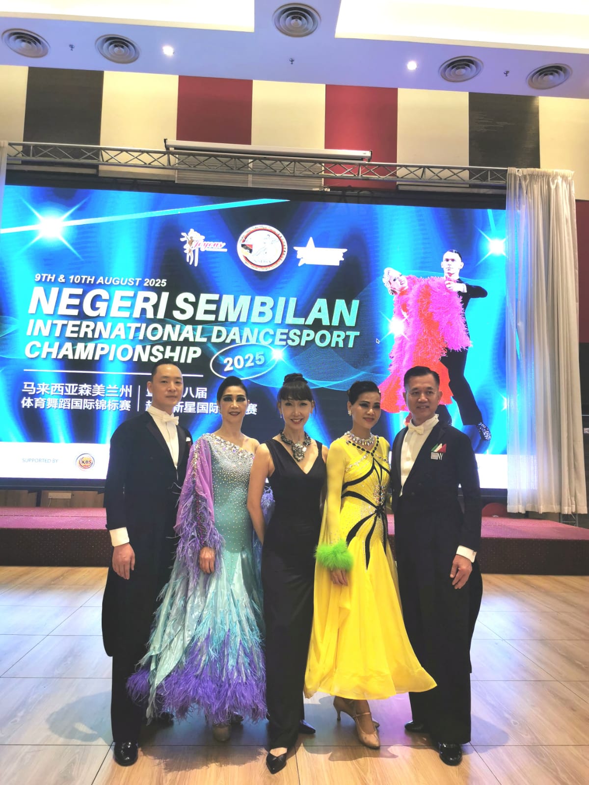 30/3/2025在吉隆坡担任評審時接受了Ms May Chean的邀請担任她于9/8/2025所主辦森美兰州体育舞蹈國际錦標賽的評審, 與Aaron 的比賽撞期,但因這也是May第一次邀請我, 我不好推辭, 我又應承了, 希望找到選手同日去兩場不同國家的比賽, 讓太太去馬來西亜代替我。